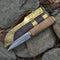 Finished with our signature beeswax and linseed oil blend, each knife is housed in a hand-sewn leather sheath with brass accents and a convenient belt loop.