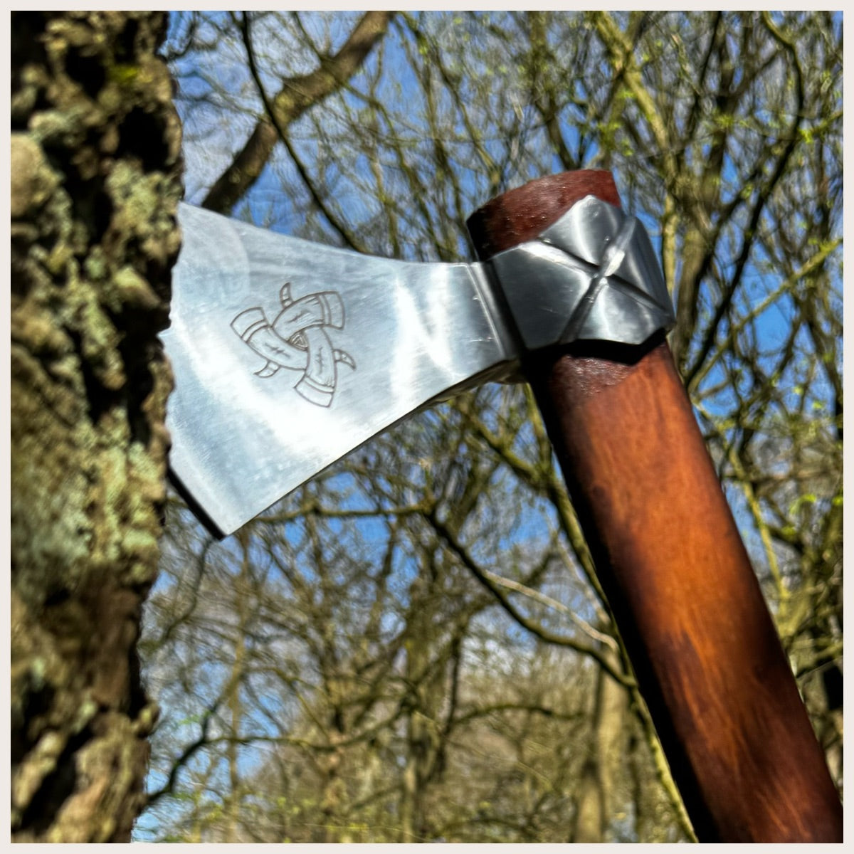 Please Note: These axes aren't heavy duty wood chopping / splitting axes. They feature a thin edge which is designed for cutting, Wood splitting axes have a thicker wedge shaped edge, specifically designed to absorb the impact caused by wood chopping. For wood splitting please check out our "Viking Splitting Axe"
