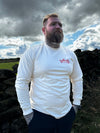 The Resort: Valhalla Tee in Off White is a long sleeve medium fit men's t-shirt featuring high quality screen printed front and back designs inspired by traditional resort signs. This premium mid-weight tee is made using 100% organic cotton, and sports a wider collar rib for that contemporary look.
