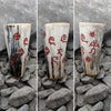 This horn mug has been hand-carved with petroglyphs inked in striking red. The petroglyphs are randomly hand-drawn and then carved, making each piece completely unique.