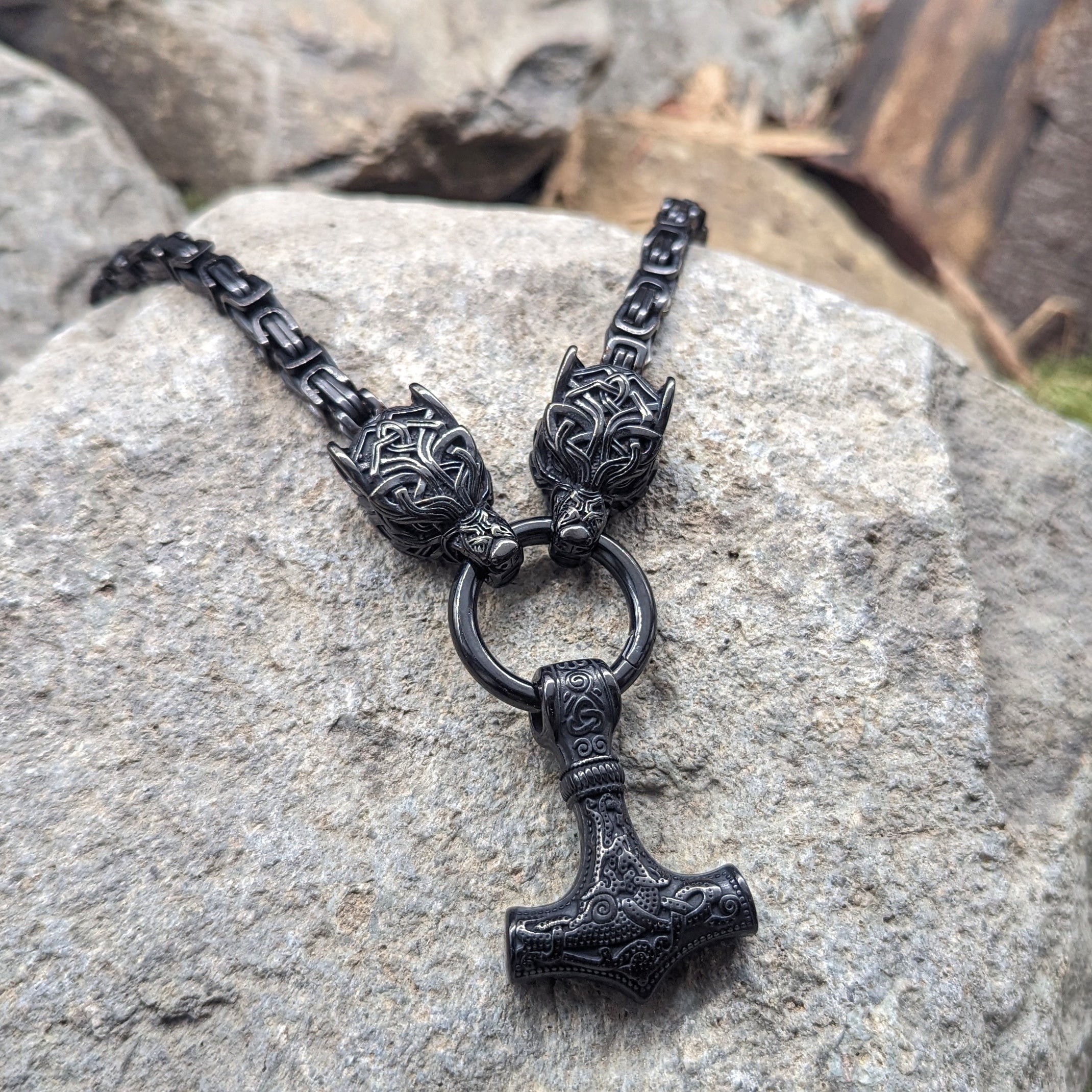 Wolf God Chain w/ Mjolnir (Black)