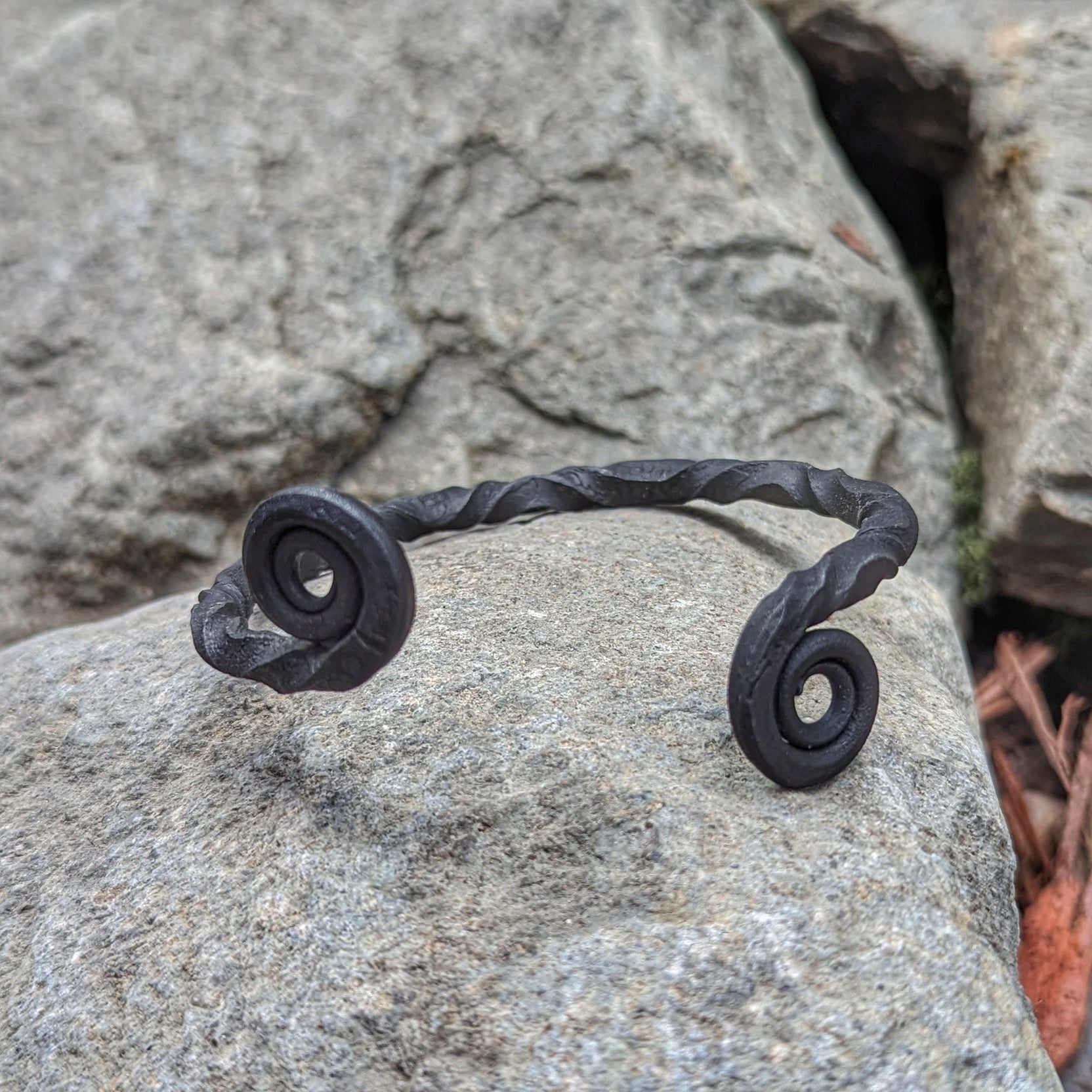 These arm rings have been masterfully hand-made with a beautiful twisted detail and finished with tight "swirls". These are exclusive to Horns of Odin and are based on finds from the Viking Age.