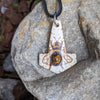 Buffalo bone Bee Mjölnir pendant with Tigers Eye Gemstone on black leather thong