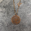 Freyja's Cat Pendant- Round copper pendant with Norse cat design