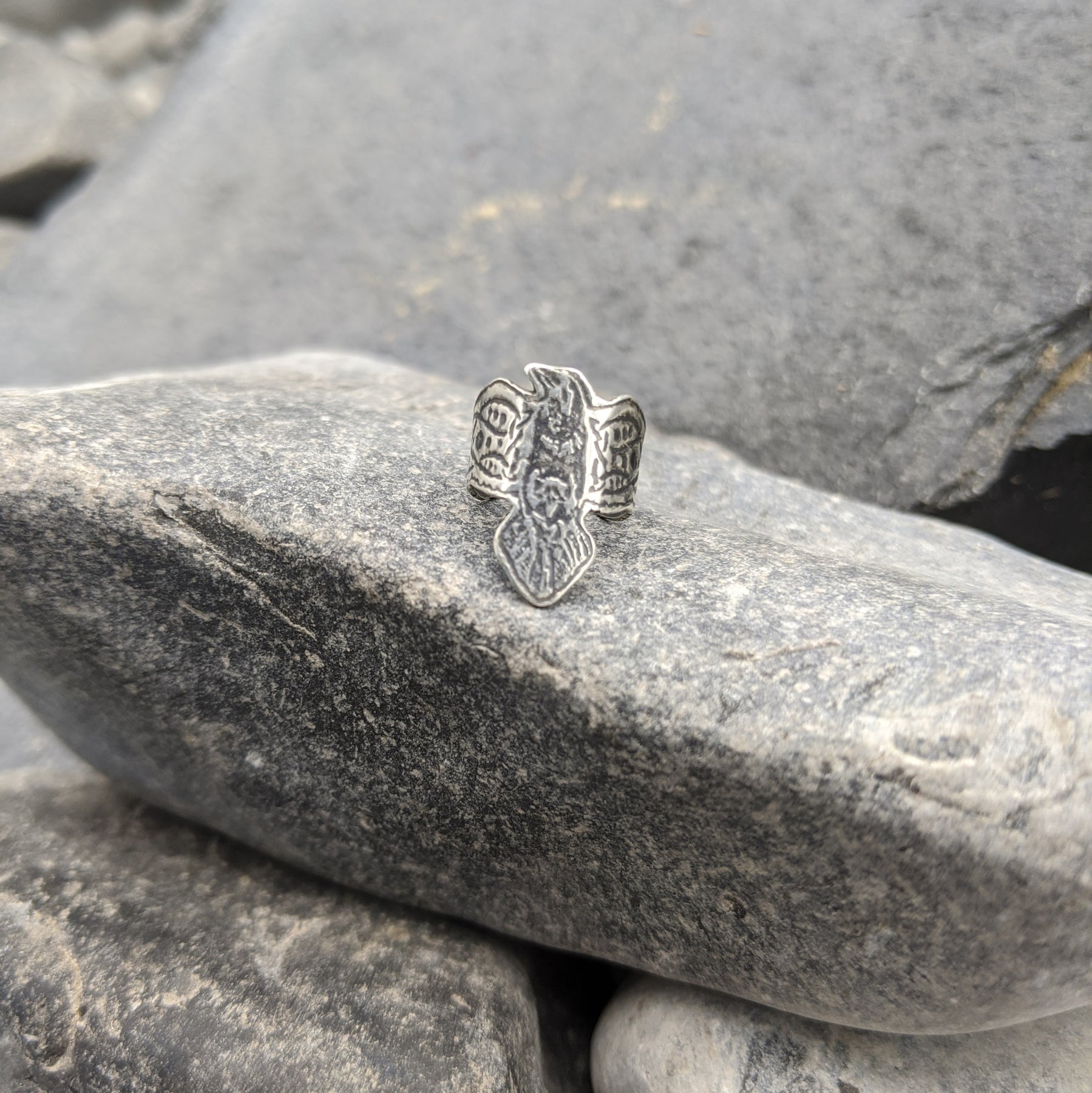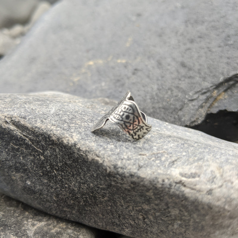 Handmade ear cuff that has been etched with a Norse raven design and then hand cut to shape.