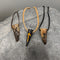These pendants are made in our Yorkshire-based workshop from horn tips. Each tip is sanded, polished and carved by hand before being suspended from a high-quality leather thong necklace. The length of the drop is adjustable by two slip knots.