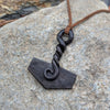 Embrace the power of Thor with this unique, and exclusive, Twisted Mjolnir pendant. Crafted from high carbon steel, this pendant has been expertly forged with the handle elegantly twisting back down on itself to create the leather loop.