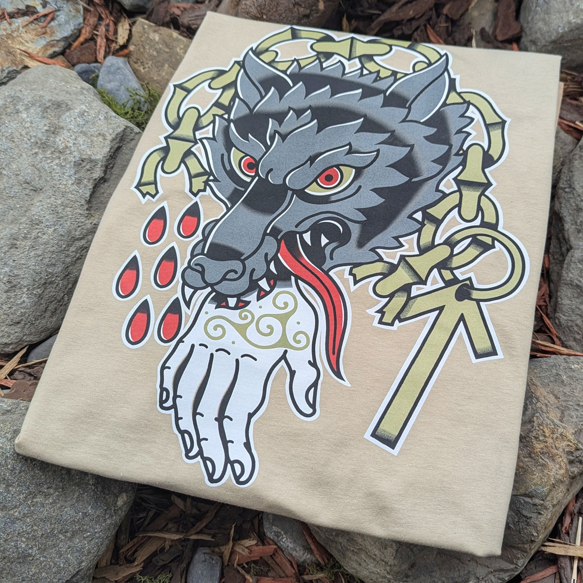 100% Cotton tee with high quality screen printed, hand-drawn designs based on traditional tattoo art styles.