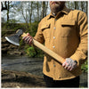 The axe has been finished with our signature microcrystalline and mineral oil blend, which helps protect, aids in grip and brings out the wood's natural grain. Each axe is supplied with a hand-sewn leather sheath that is traditionally tied.
