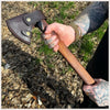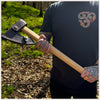 Freyja's Battle Axe has been beautifully crafted using the highest-quality materials. The head is forged from carbon steel to achieve the iconic "bearded" shape associated with the Vikings. The "beard" has been forged shorter than typical and features an elongated "point" - which is ideal for "thrusting" the axe in close quarters, whilst remaining light enough to throw when needed.