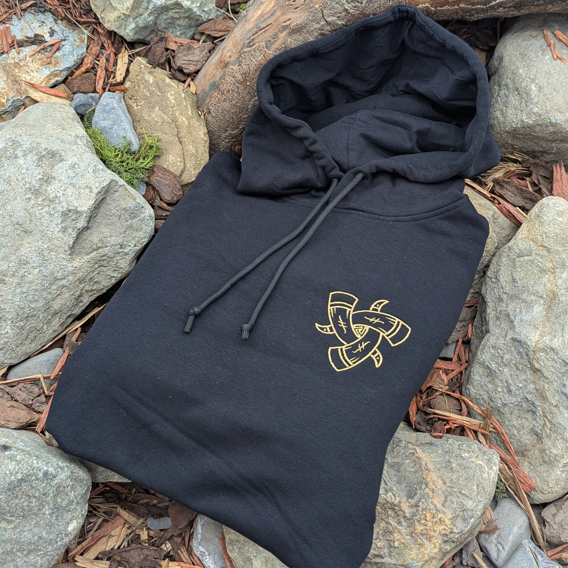 The Horns of Odin Hoodie in Black is a regular fit unisex hoodie featuring our iconic "Horns of Odin" logo embroidered on the left breast. This premium hoodie is made using the highest quality organic fibres (80% Organic Cotton / 20% Recycled Polyester), and sports a herringbone neck tape with colour-matched draw cords. This mid-weight hoodie is incredibly soft, comfortable and perfect for layering on those colder evenings.