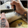 All our horn products are handmade in our Yorkshire-based workshop. All horns arrive in their completely natural state. We then sand, polish and line the inside of each individual piece. All designs are drawn on and carved entirely by hand.