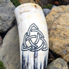 This horn has been hand-carved with an image of the Norse symbol Triquetra.