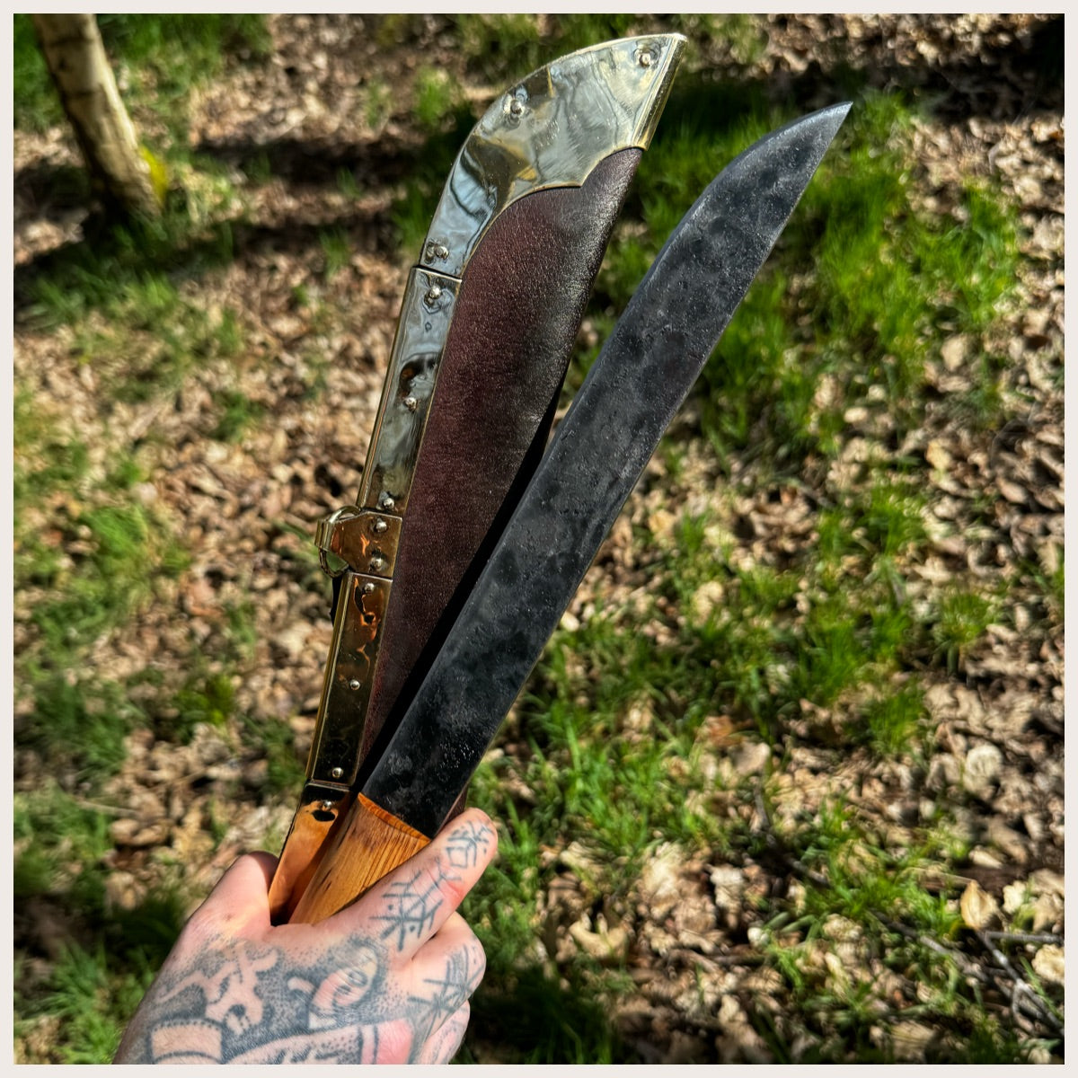 Crafted with precision, the seax boasts an olive wood handle with a brass cap, finished with our signature beeswax and linseed oil blend for enhanced durability and grip.